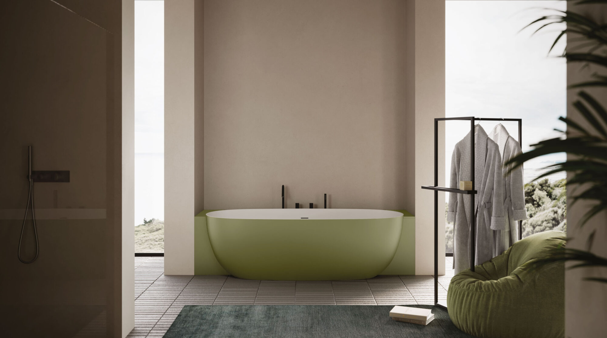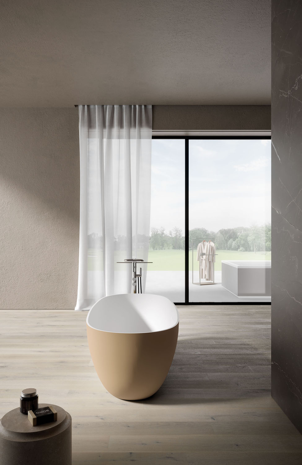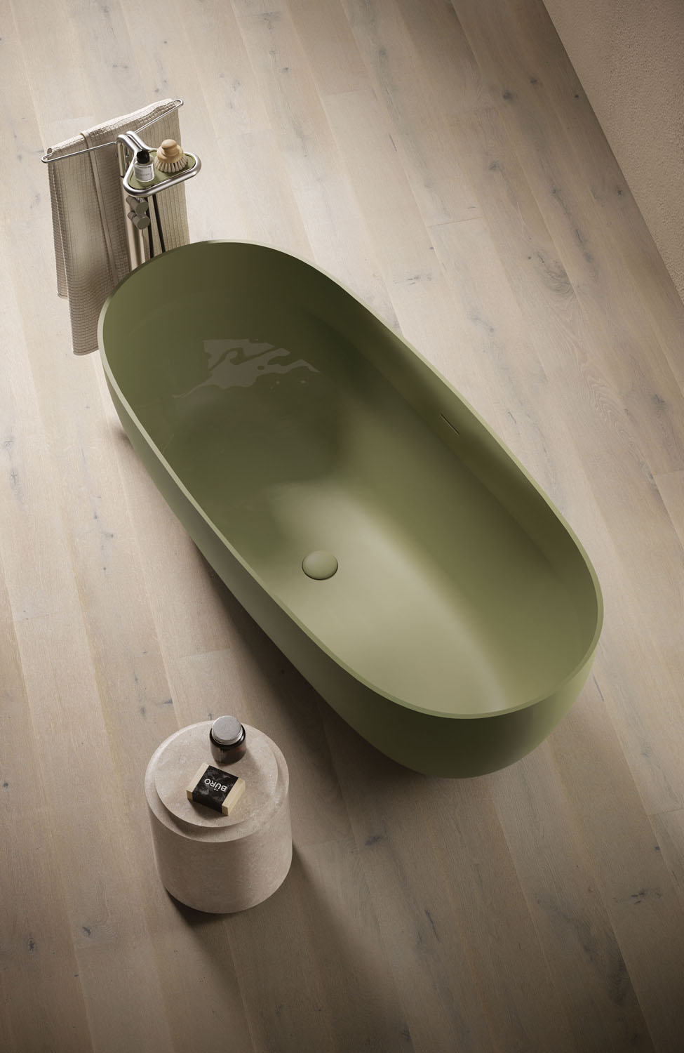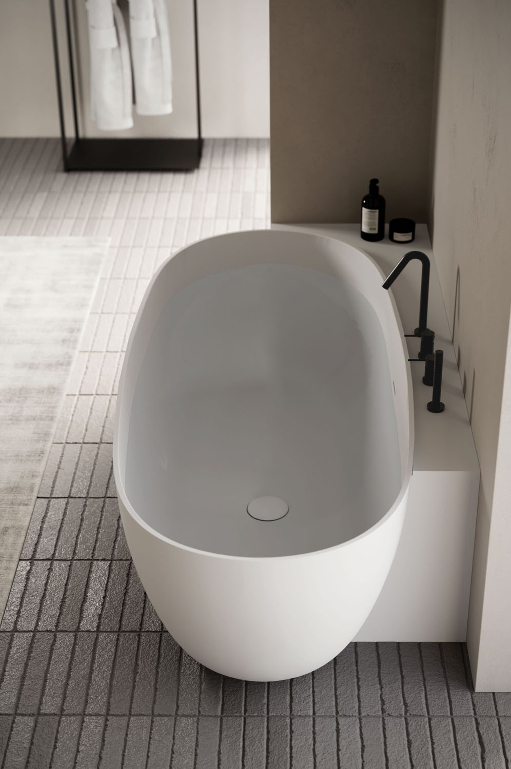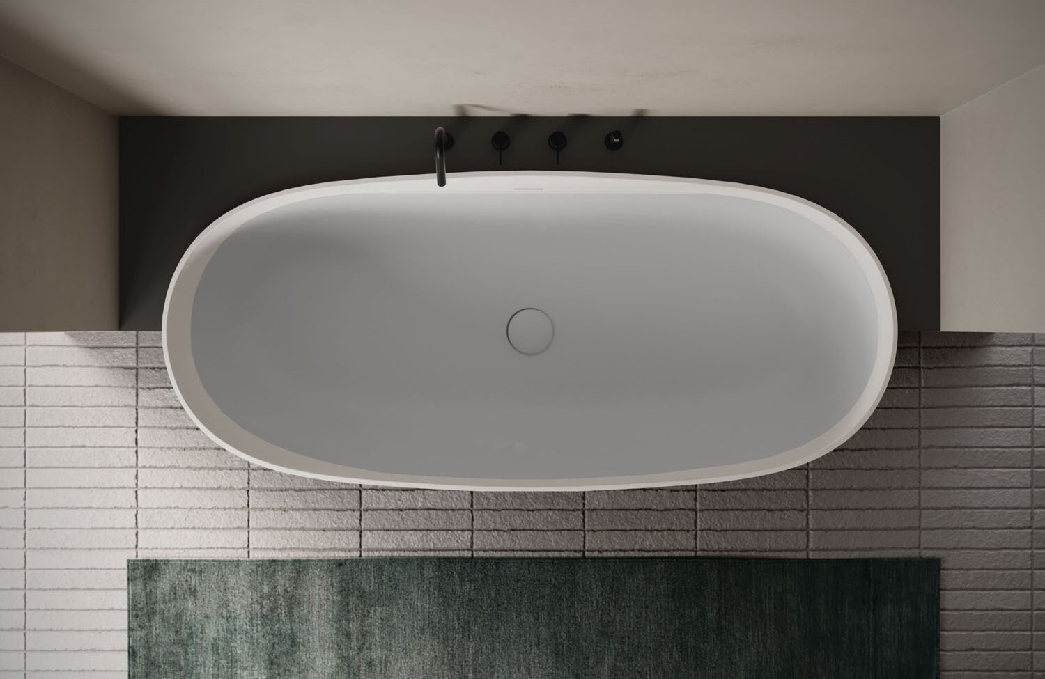 The Ellisse bathtub is made of Aquatek Light and is characterised by a distinguishing oval shape. It comes in four lengths (small, medium, large, extra-large) and four versions: free-standing, corner, recess and back-to-wall. The free-standing version is also available in M-Lux in glossy Bianco. The Aquatek Light version offers complete colour customisation both inside and out, in any mat lacquered colour in the Ideagroup, RAL or NCS palettes. Complete with integral overflow. Pop-up waste available. Colour matching waste cover.