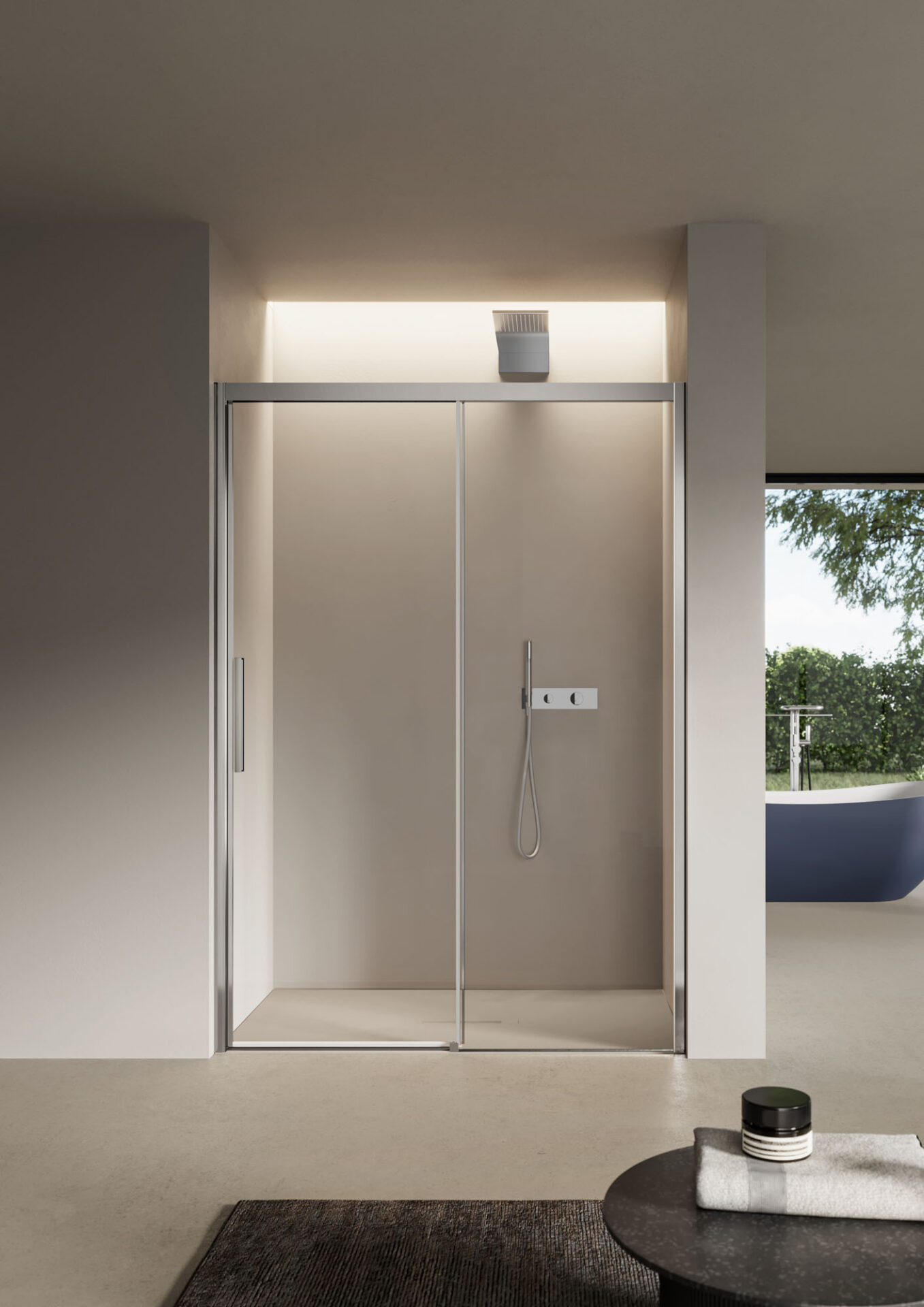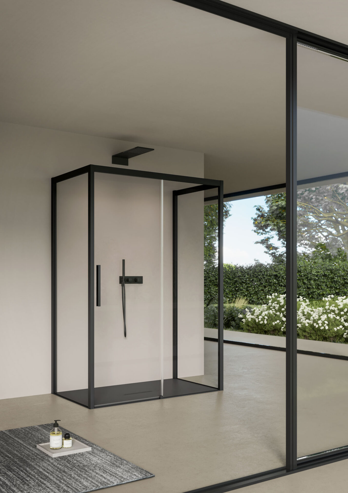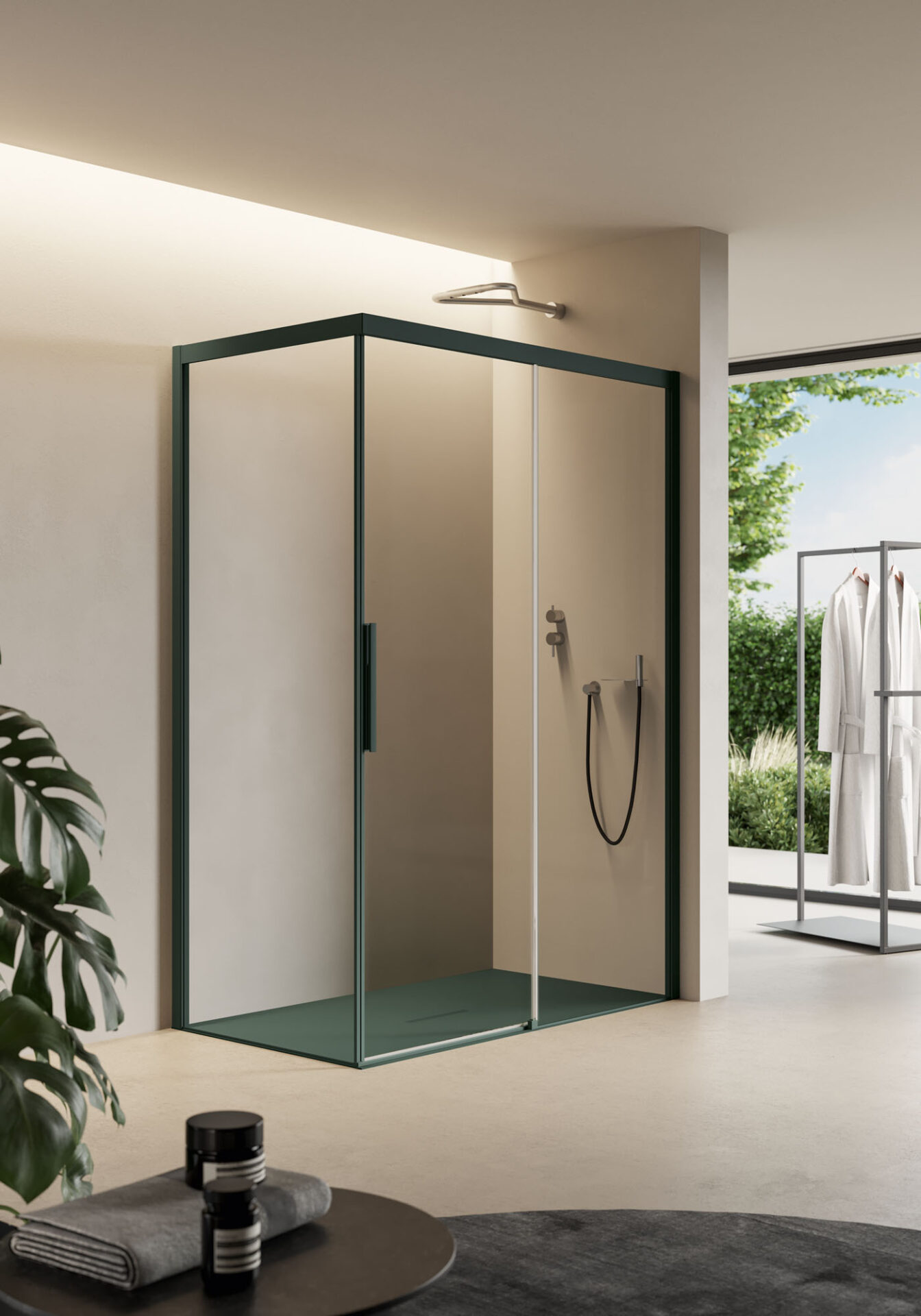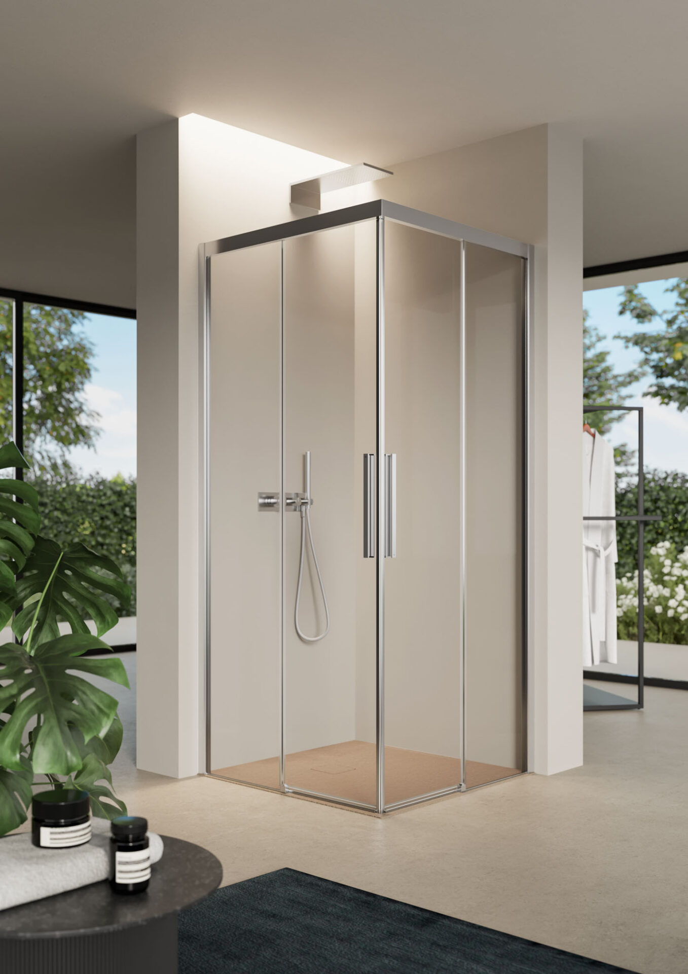 Shower cubicle with 6mm thick tempered glass panels. Enjoy your daily well-being routine in a totally natural, carefree way. The Focus shower collection will bring new energy into the bathroom, with a wide range of models for recess and corner installation.