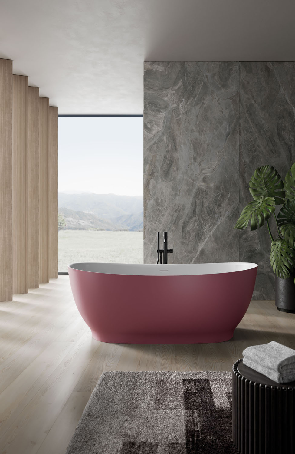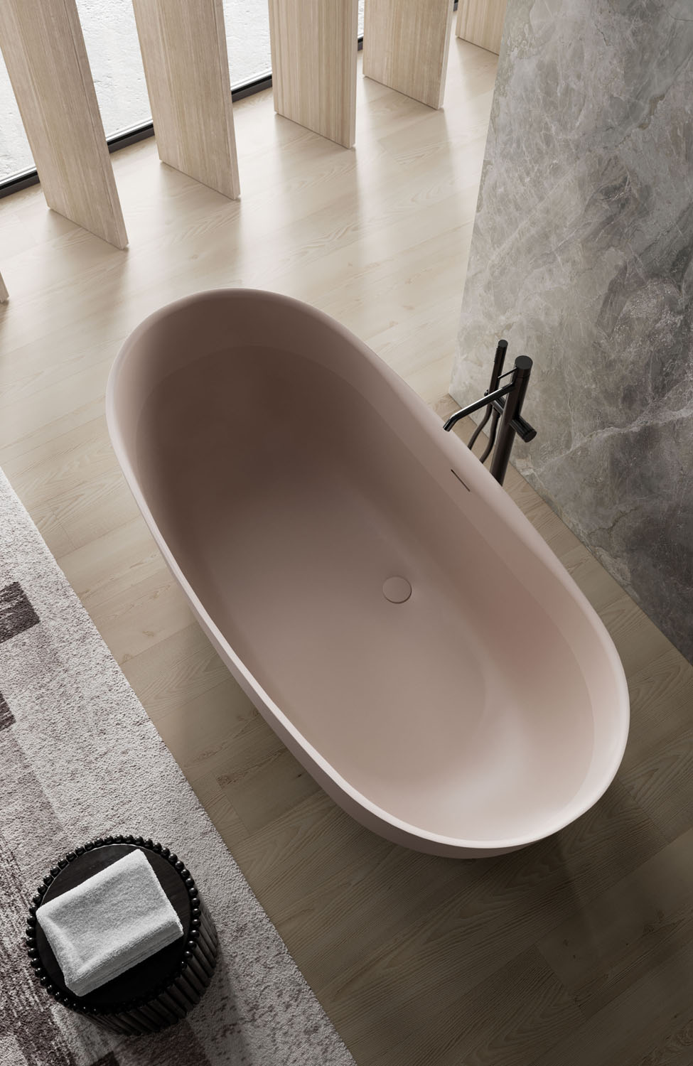 Versatile and sophisticated, the Ischia bathtub perfectly complements any bathroom style. It is crafted from matt Bianco Cristalplant, with the option of a matt lacquered finish (exterior only or full) in any colour in the Ideagroup, RAL and NCS palettes. Complete with integral overflow. Pop-up waste available. Colour matching waste cover.
