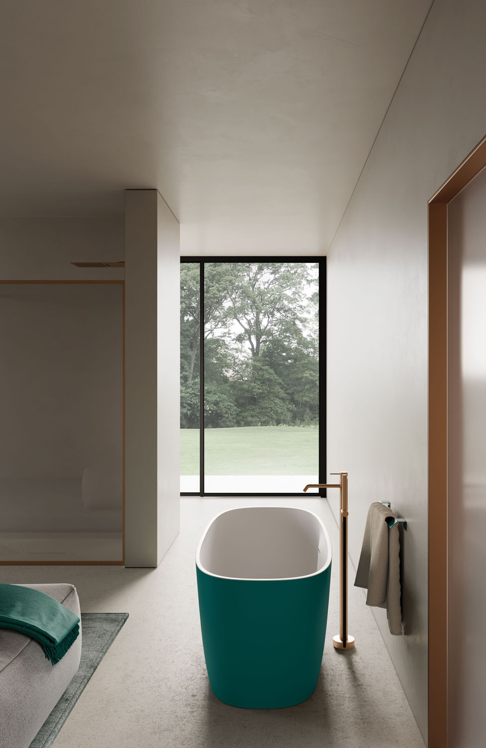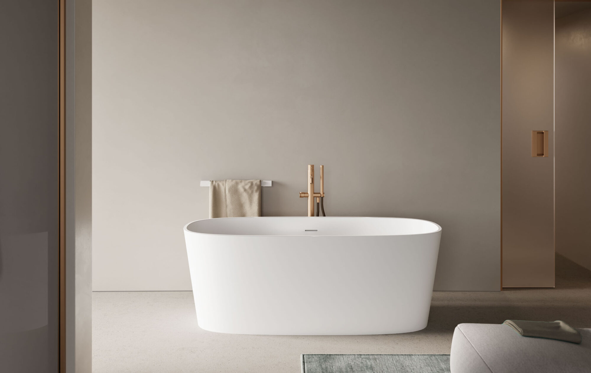 The sleek, sinuous design of the Loop free-standing bathtub sparks serenity for your daily comfort and relaxation. It is crafted from matt Bianco Cristalplant®, with the option of a matt lacquered finish (exterior only or full) in any colour in the Ideagroup, RAL and NCS palettes. Complete with integral overflow. Pop-up waste available. Colour matching waste cover.