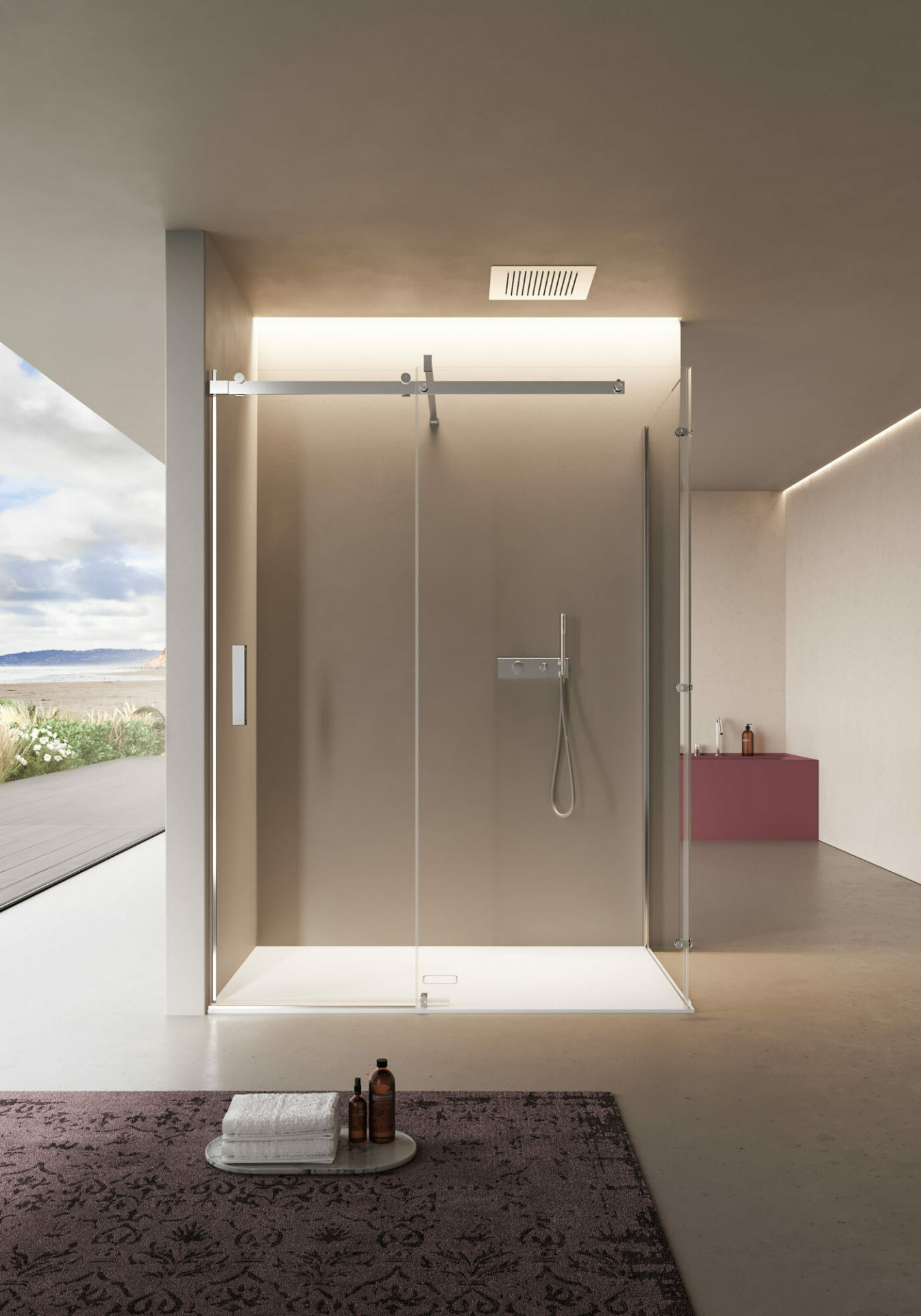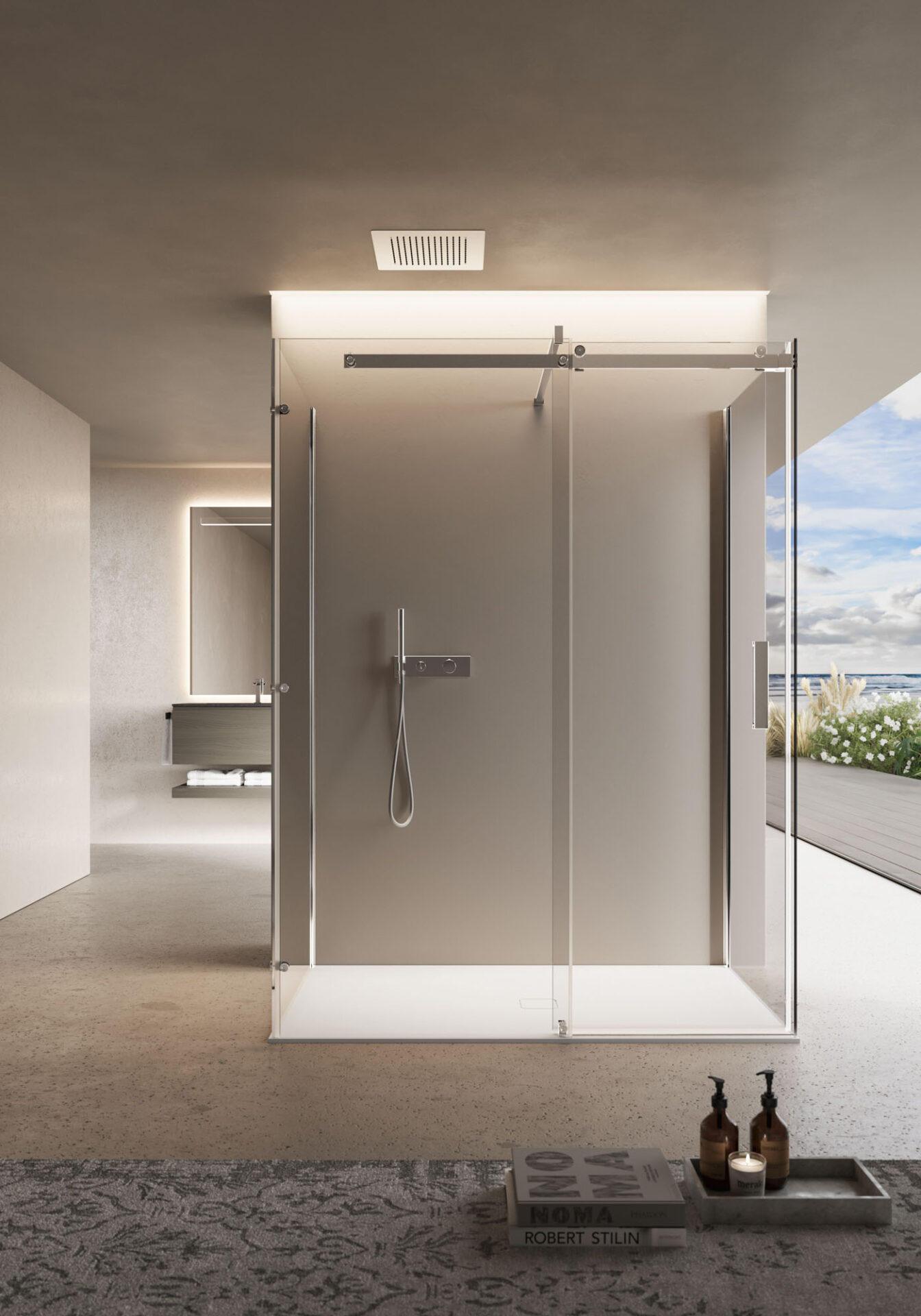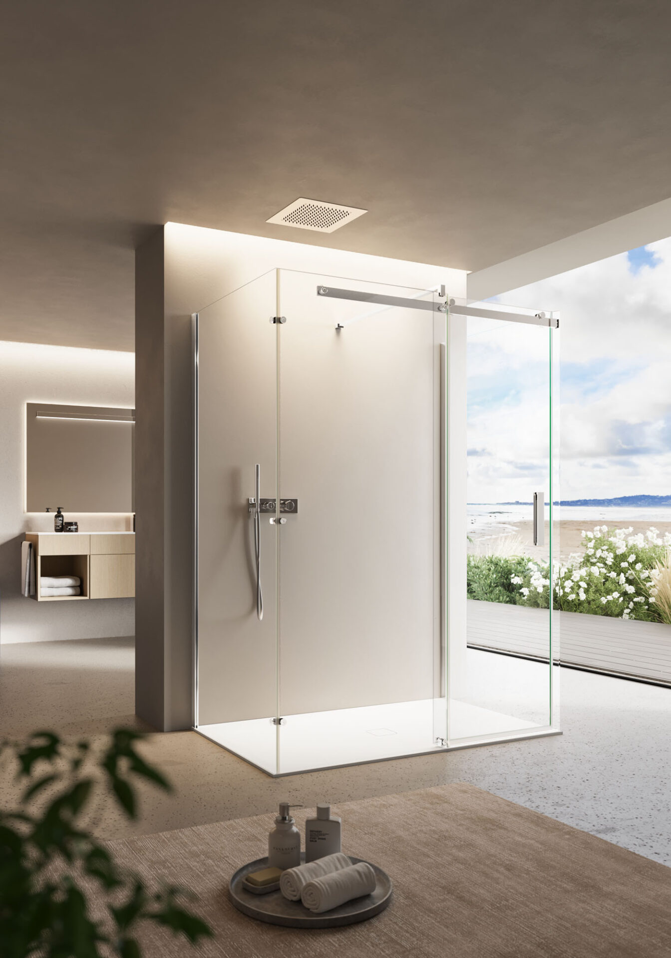 A minimal, stylish shower enclosure. Like a magic box that opens to reveal its marvellous contents, the Oops shower cubicle knows how to surprise and seduce you, letting you escape your everyday routine and savour moments of blissful relaxation.